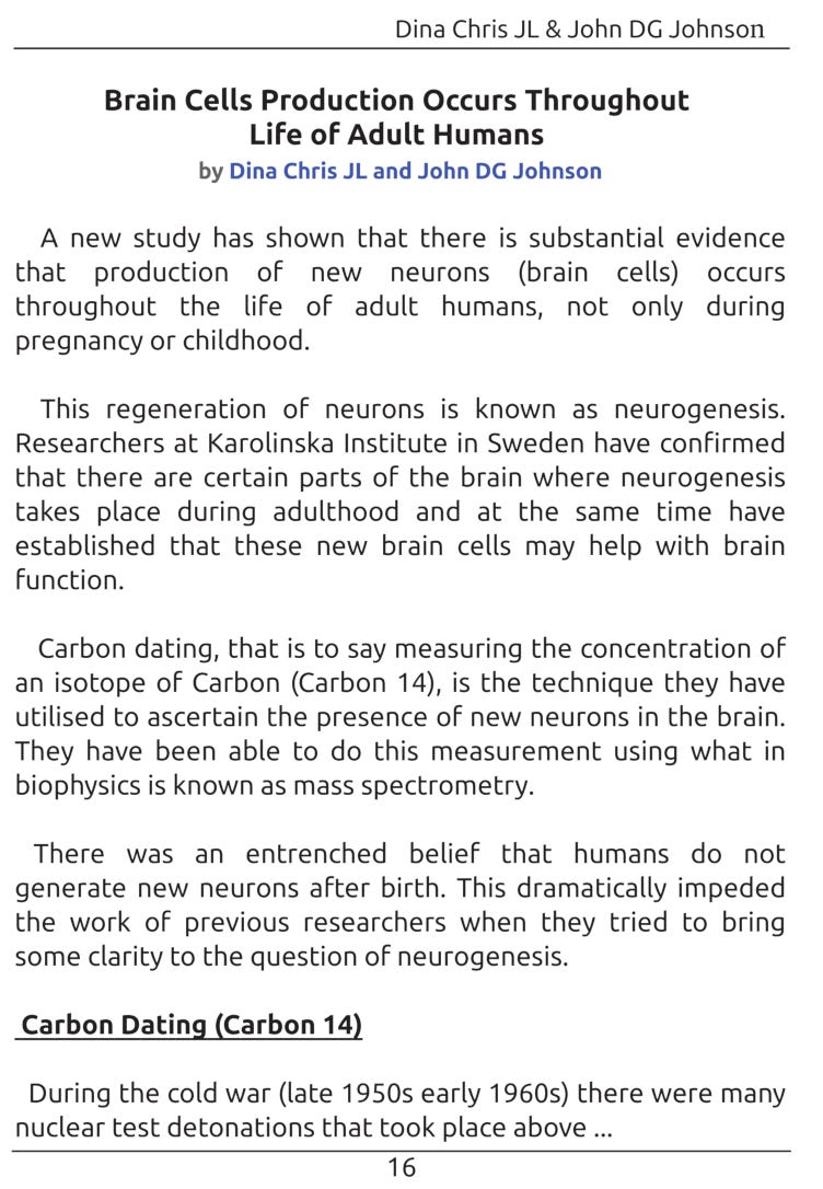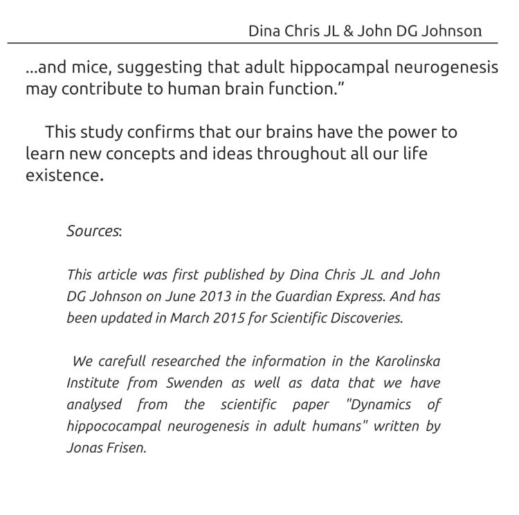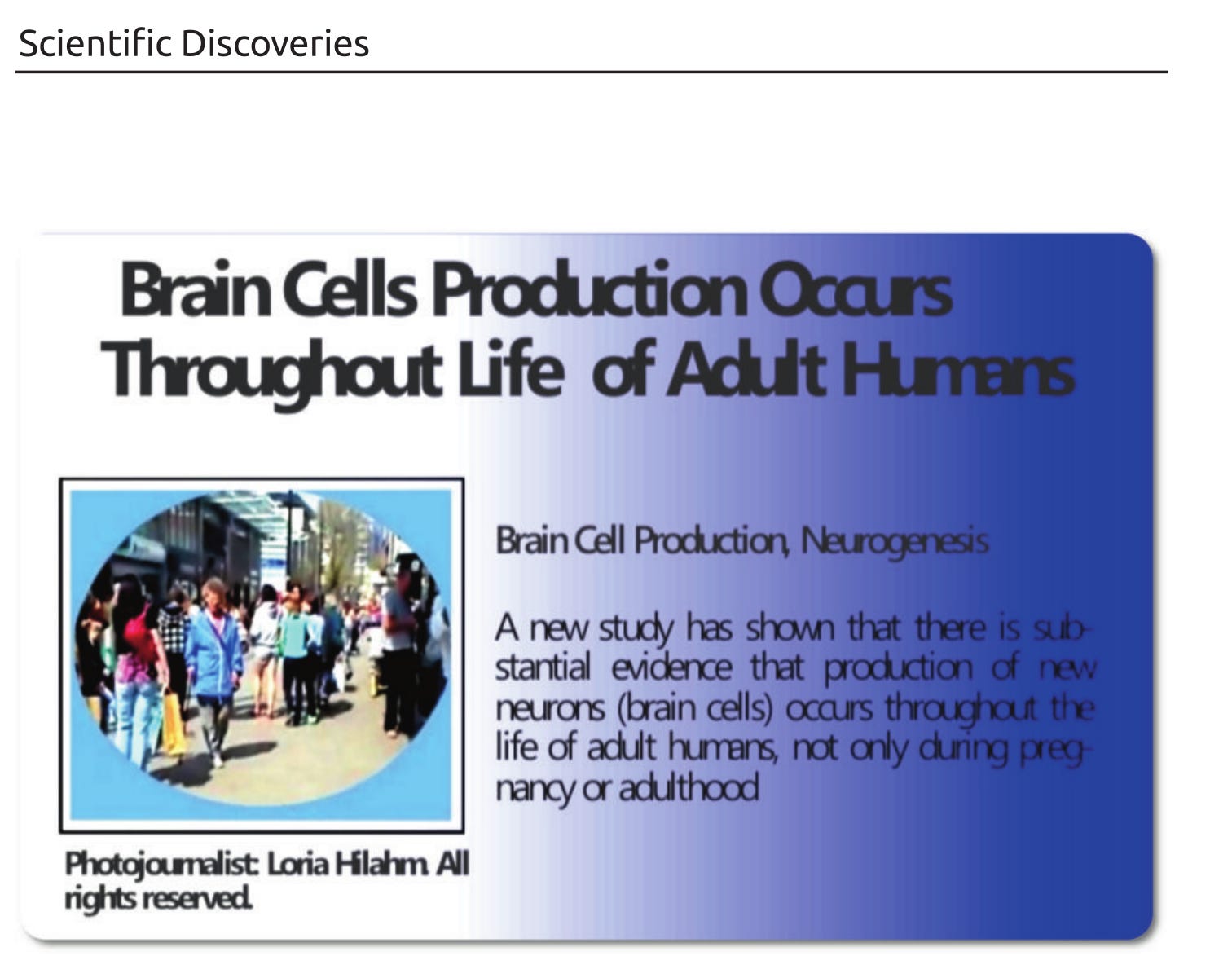 "Brain Cell Production Occurs Throughout Life of Adult Humans" "..Our brains have the power to learn new concepts and ideas throughout all our life existence"